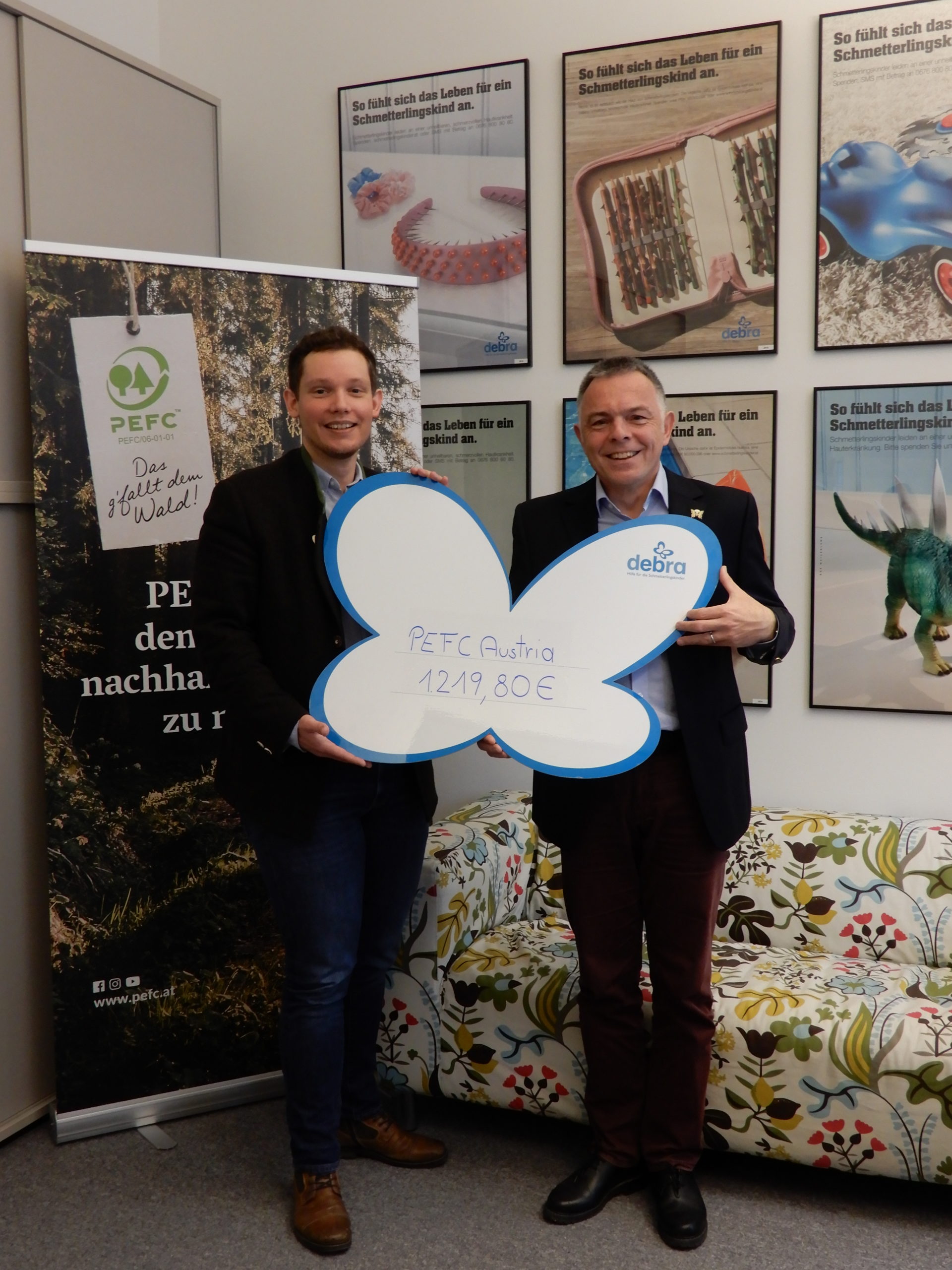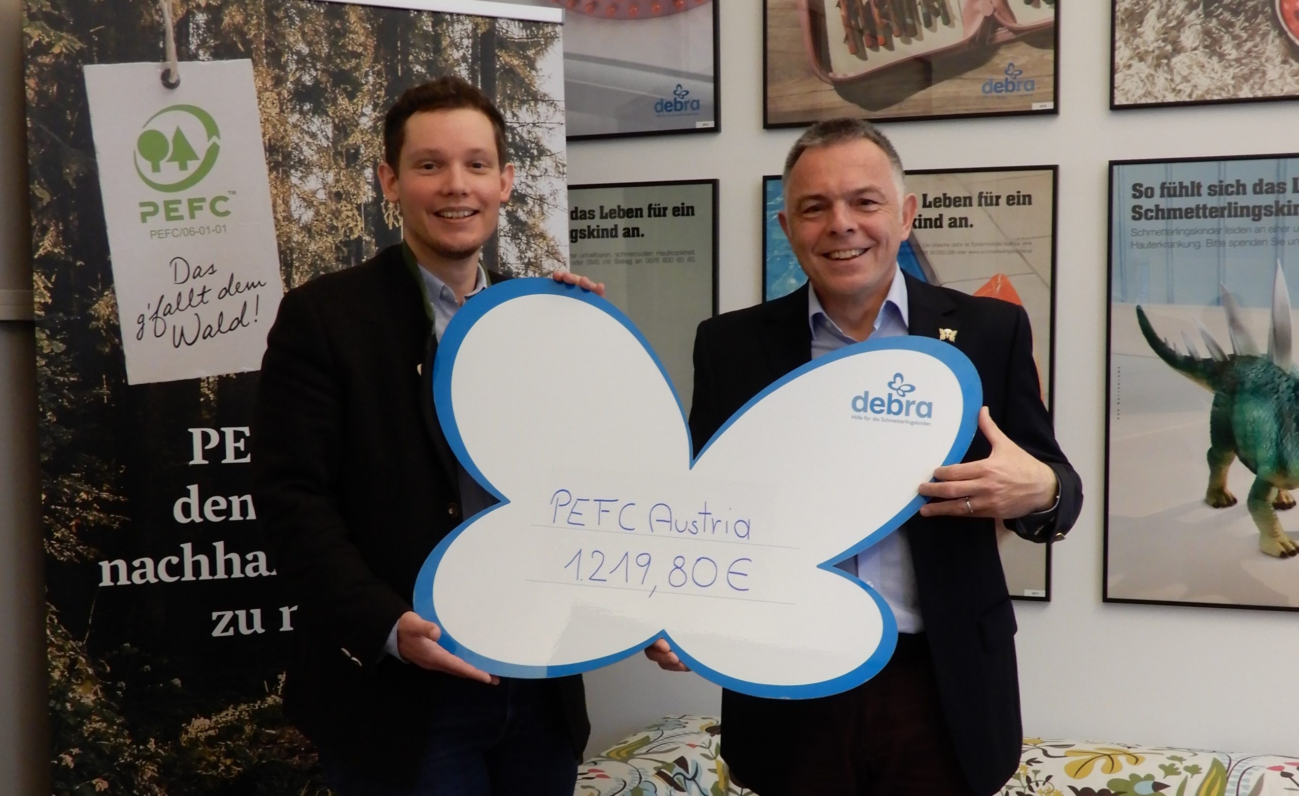 Ökonomie, Ökologie und Soziales sind im PEFC-Standard für eine nachhaltige, klimafitte Waldbewirtschaftung und Holzverarbeitung verankert. „Da PEFC Austria im Sinne der sozialen Komponente der Nachhaltigkeit auch einen gesellschaftlichen Beitrag leisten möchte, freuen wir uns, ein wenig Behaglichkeit und Lebensqualität in den Alltag EB-Betroffener zu bringen. Auch wenn unser Beitrag nur eine kleine Geste ist, würden wir uns viele Nachahmer wünschen, die das motivierte DEBRA Austria-Team rund um Dr. Riedl unterstützen um die EB-Forschung weiter voranzutreiben“, so DI Gerhard Pichler, Geschäftsführer von PEFC Austria zur Spendenaktion.